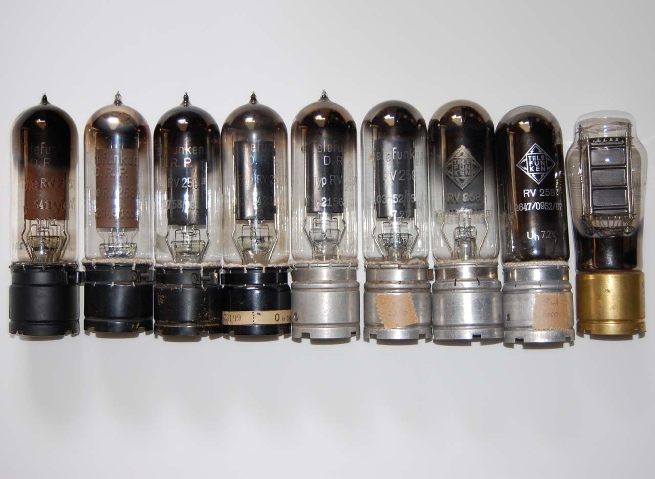 R は真空管を、V は増幅器を表しますので、RV は増幅器用の真空管という意味になります。RS237 などの RS が通信用の真空管なのに対し、RV が本来のオーディオ管というのは使っていて気分が良いものです。じっさい、211系などの送信管よりも素性の良さを感じます。300Bが実際のオーディオ用途でそれほど使われなかったのに対し、プロ用の大出力アンプで大成功を納めた RV258/RV239 は、戦前・戦中のドイツ球にしては数多く現存していますが、さすがに最近は入手が難しくなってきました。