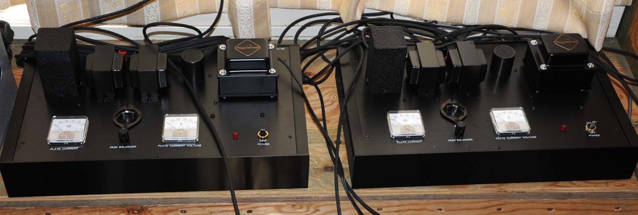 リスニングルームでは夜遅くまで聴いていただいた。はじめにウェスタンエレクトリックの15Aを中心にした3ウェイを鳴らした。古いメッシュのリアキャップが付いた555Wの15Aホーンに、596Aツィーターとエルタス製のKS12004ウーファーを2発追加した3ウェイで、100 Hz〜6 kHzと、なるべく広い周波数範囲を15Aが受け持つ。ウーファーは6BX7単管プッシュプルの10 Wアンプで、555Wと596Aは104Dの丸球のシングルの0.5 Wアンプでドライブするマルチアンプ駆動だ。もちろんモノラルである。15Aはジャン平賀氏も所有しておられ、柔らかな音色がお気に入りの様子だった。