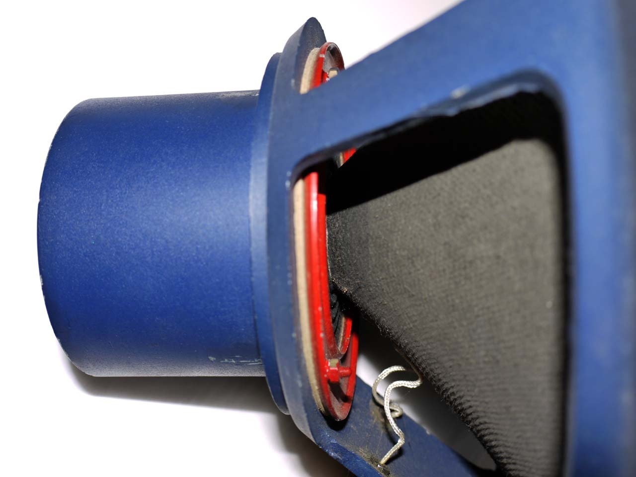このユニットは数発を並べたフルレンジ、あるいは10個以上を並べて小型のホーン・ツィータと組み合わせた2ウェイとして、主にPA用途で使われた。幅広く用いられた割には数が多くないように思う。濃いブルーに塗装されたバスケットは、ジーメンスの10インチユニットのような薄いアルミではなく、肉厚でガッチリとしている。この塗装色から「ブルー・フレーム」などと呼ばれるようになった。最も美しいスピーカーユニットの一つだ。